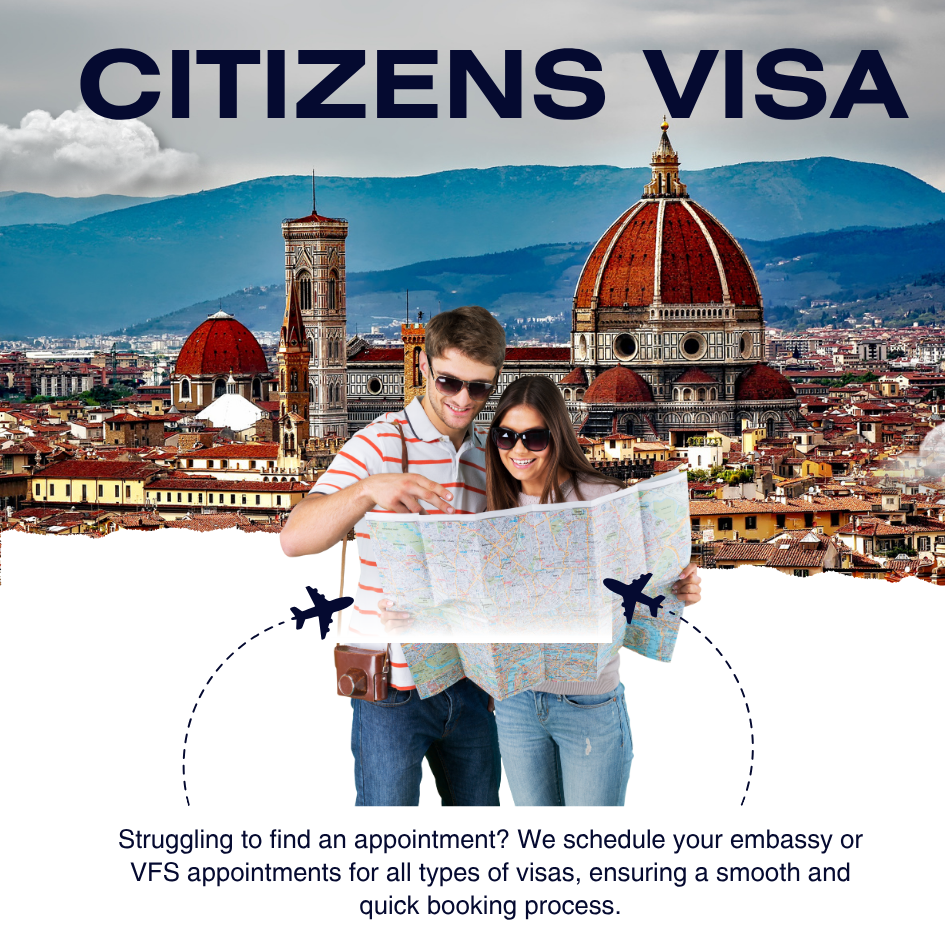 Struggling to find an appointment? We schedule your embassy or Citizens VISA appointments for all types of visas, ensuring a smooth and quick booking process.